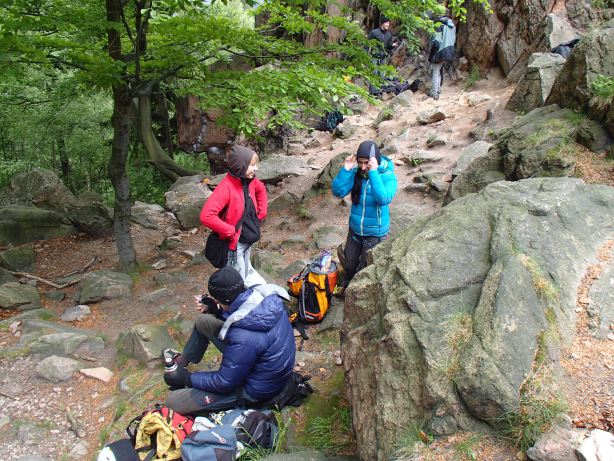 Po zaliczeniu Sukiennic przenieśliśmy się na sąsiednią Krzywą, gdzie padły w dość szybkim tempie i masakrycznym wietrze dwie dróżki. Później chwila oddechu, kilka fotek i z coraz bardziej oblężonych przez kursy wszelakie Sukiennic i Krzywej udaliśmy się na Jastrzębią Turnię, gdzie wcześniej wyemigrowała Asia z Jelonem. Tam już nieco wymięty i z niemałymi ubytkami skóry na palcach wstawiam się w coś trudniejszego, ale niestety ani fortuna ani moje samozaparcie nie dają rady, i drogę robię w stylu AF . Anitka z Olą wstawiają się w Kancik i na dziś kończymy...Późnym popołudniem wracamy na pole namiotowe, taszcząc drewno na wieczorne smażenie kiełbaski popijanej specjałami z okolicznych browarów. Mniam.