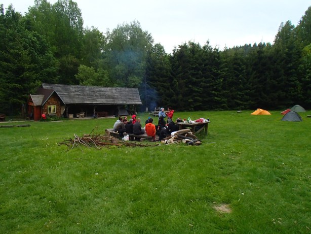 Do celu dojechaliśmy późno, bo po 23.00, a i to dzięki telefonicznemu systemowi naprowadzania Bartka i Asi. Ekipa klubowa stołowała się już od dawna w socjalu, a my tymczasem rozłożyliśmy nasze namioty na zielonej trawce i zmęczeni całym dniem poszliśmy na spotkanie z Morfeuszem.