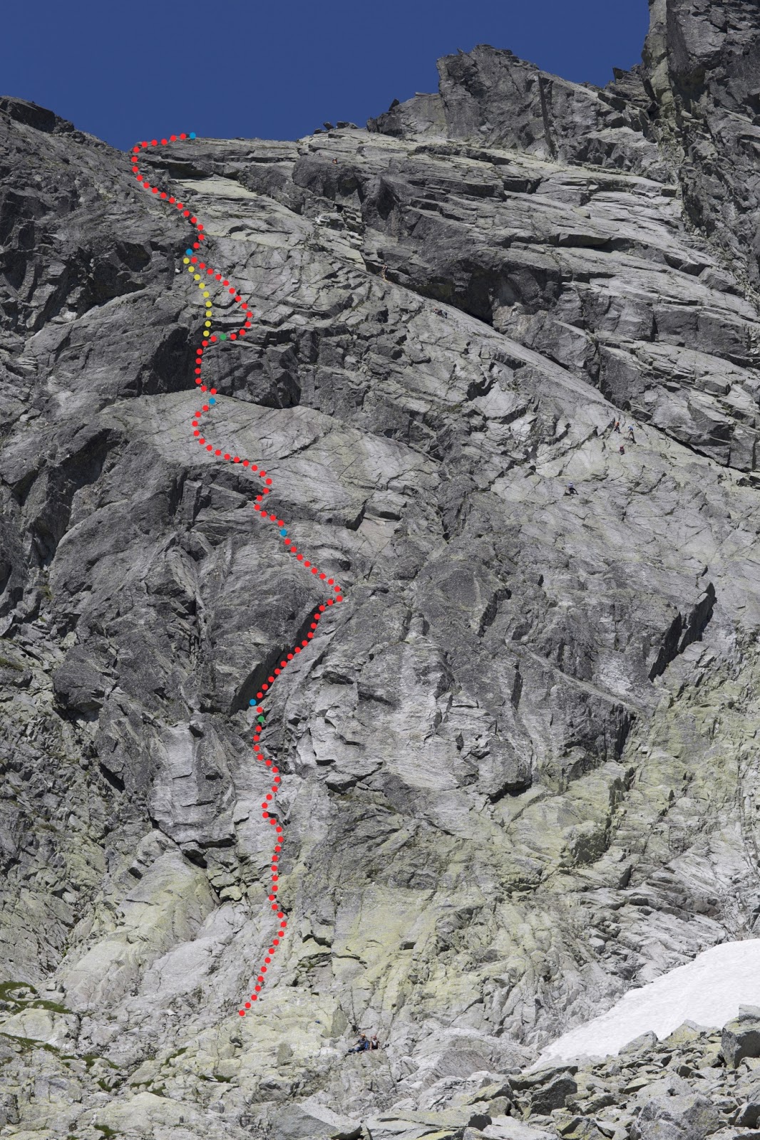 Droga sama w sobie specjalnie mnie nie zachwyciła. Jako główny cel na jeden dzień zdecydowanie nie jest warta zainteresowania. Bardziej bym ją potraktował jako sprawdzian swoich umiejętności w, nie łatwej cyfrze, VI+, niż jako piękną drogę wspinaczkową. Na szczęście poprzedniego dnia zrobiliśmy super cestę na zachodniej ścianie Gerlacha, także w ogólnym rozrachunku nie ma czego żałować.